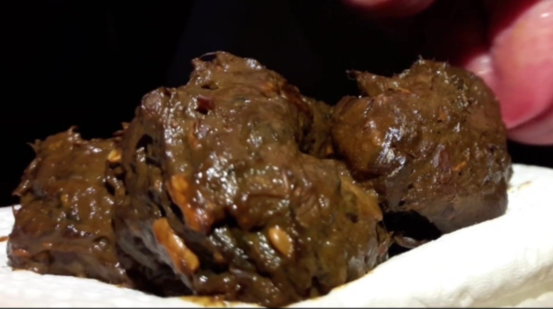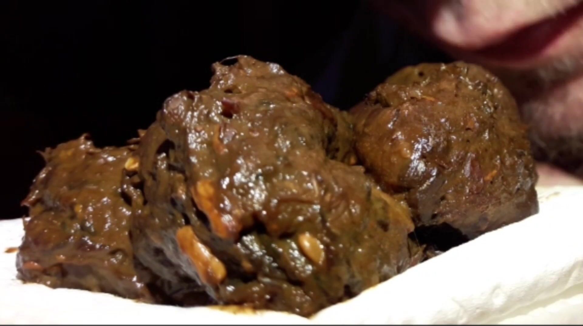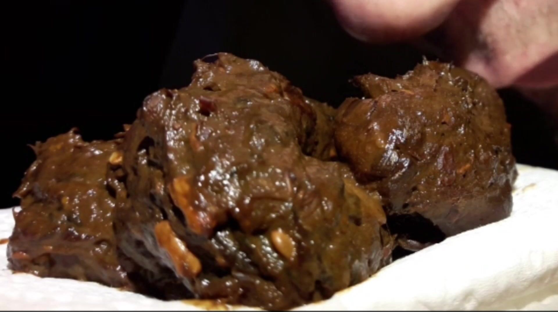 Je fais caca dans ma main, je déguste ma crotte et je jouis dessus