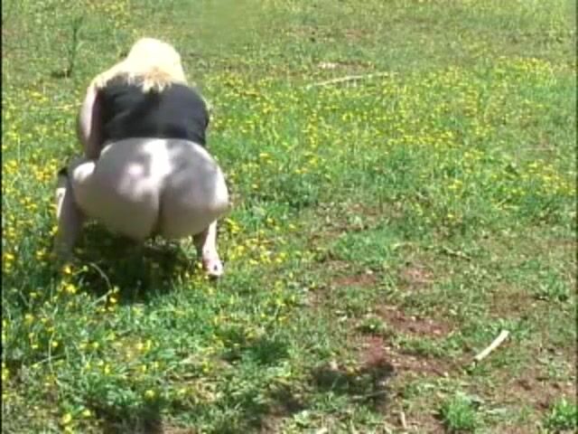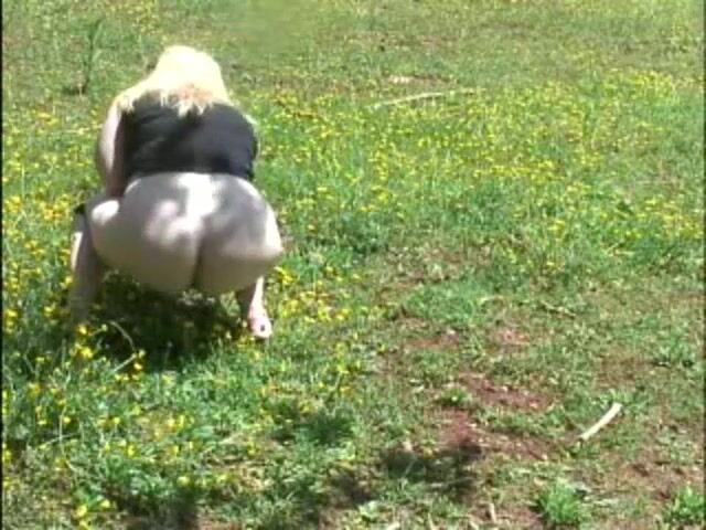 Fat woman shitting in the field