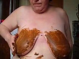 Mature mom riding dildo shitting and smearing