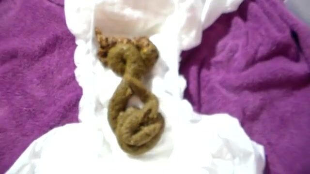 sexy skinny girl takes huge shit on diaper