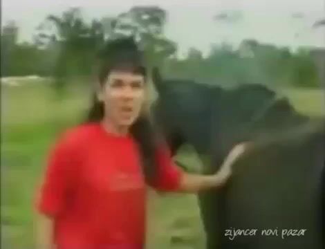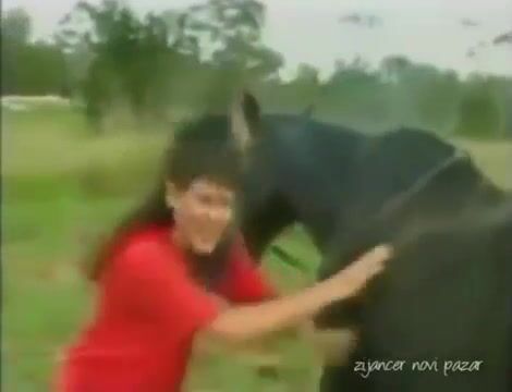 the horse shited on girl's head