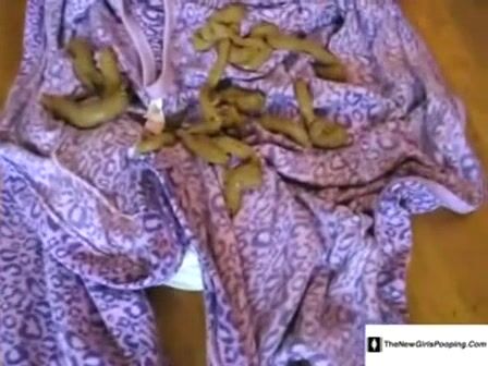 Pervy girl shits on some clothes
