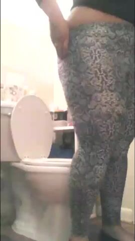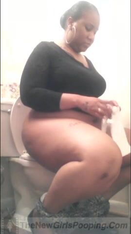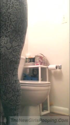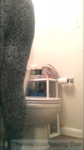 Lady poops in toilet