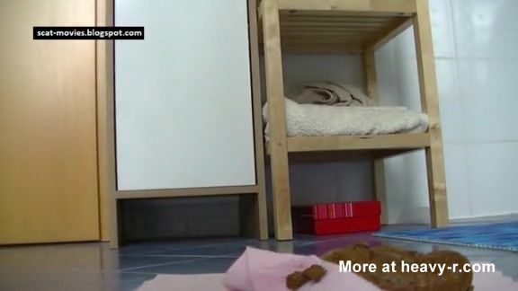 Hot thin babe shits on her floor