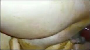 Ebony BBW shits pisses on couch