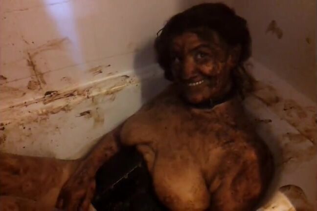 fat girl doing an enema