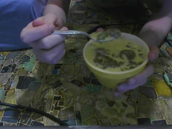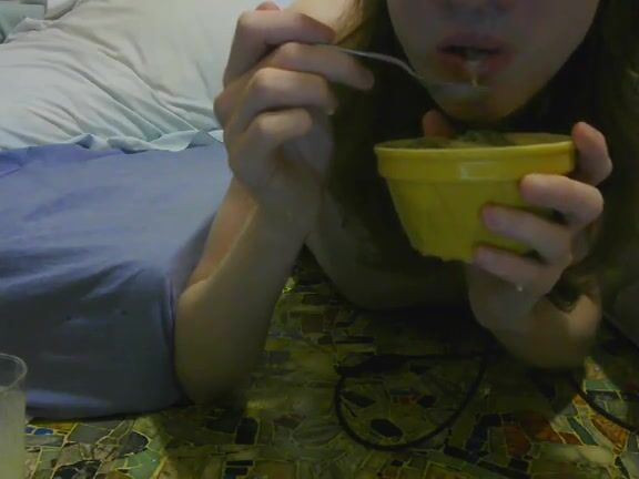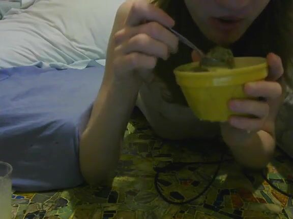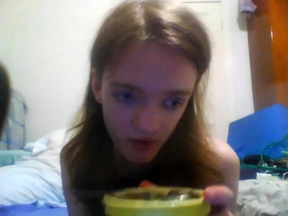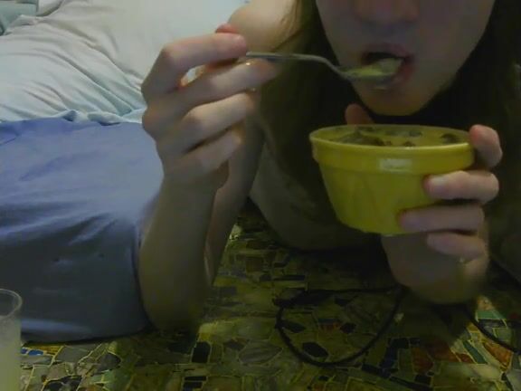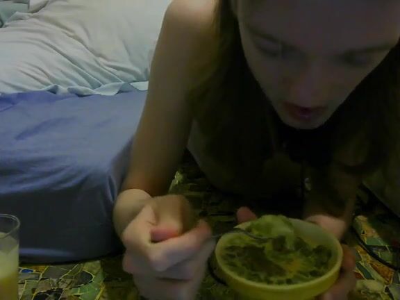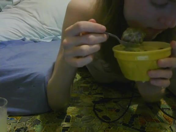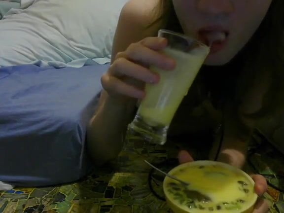 girl enjoys eating scat custard and pudding