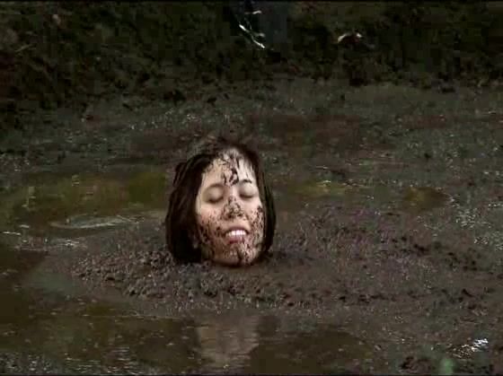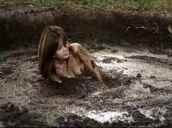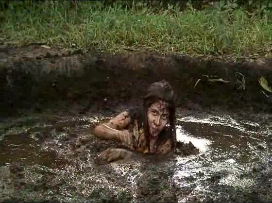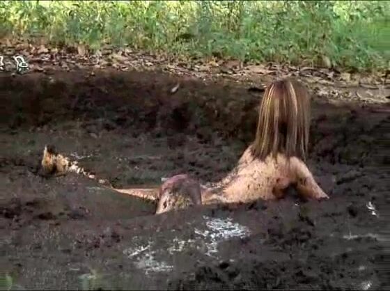 girl rolling in pig shit pit