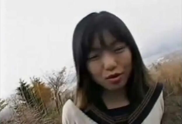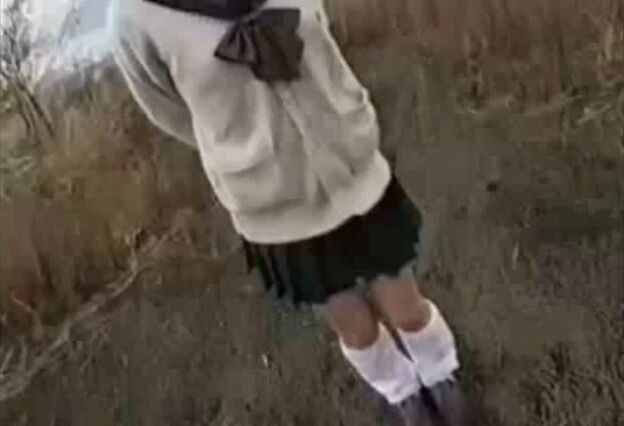 Asian school girl back yard shit