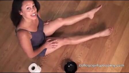 Chocolate college girl Denver shits in the bowl - Scat Video Collection