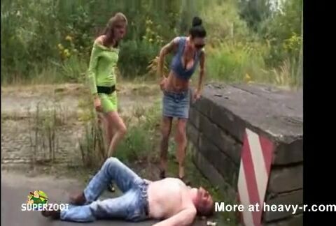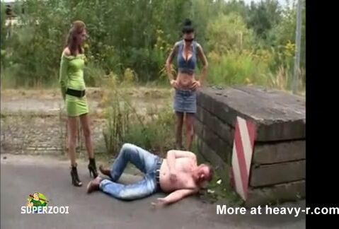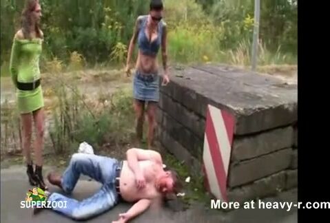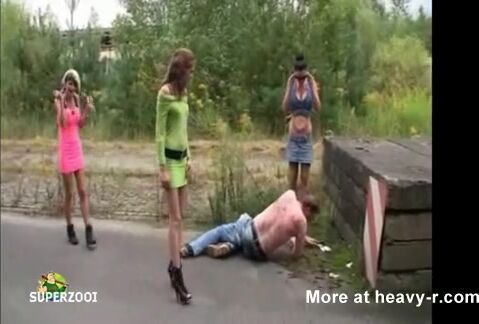 Sluts humiliate a homeless man