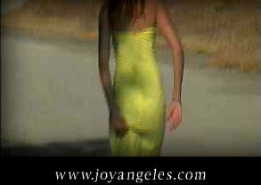 Green dress at beach