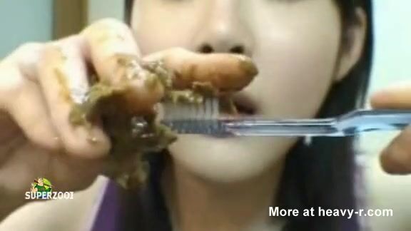 Asian girl tastes her shit