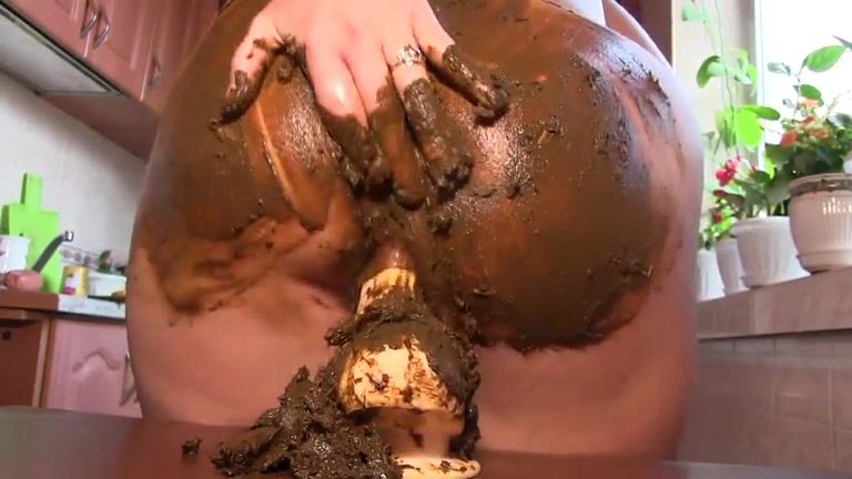 Mature mom riding dildo shitting and smearing