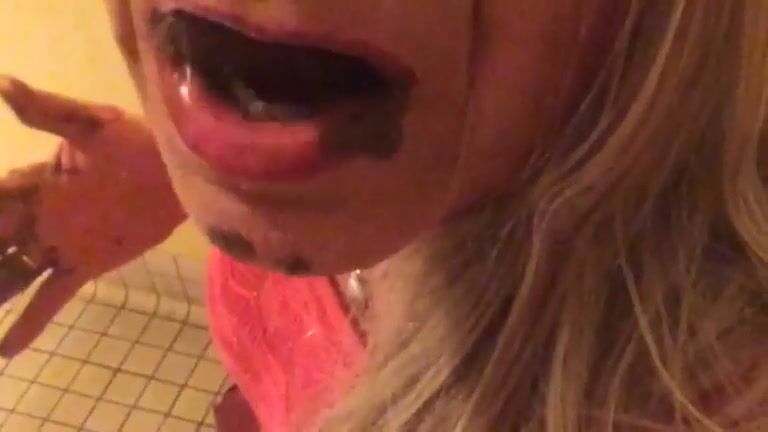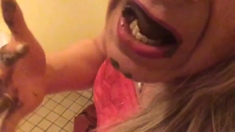 Blonde MILF eat her shit