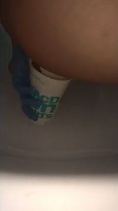 Girl open wide legs and shitting on the toilet floor