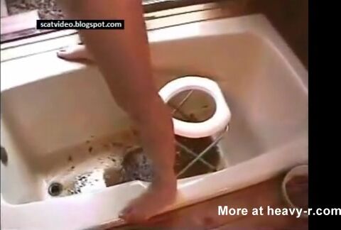 very dirty enema in bathtube