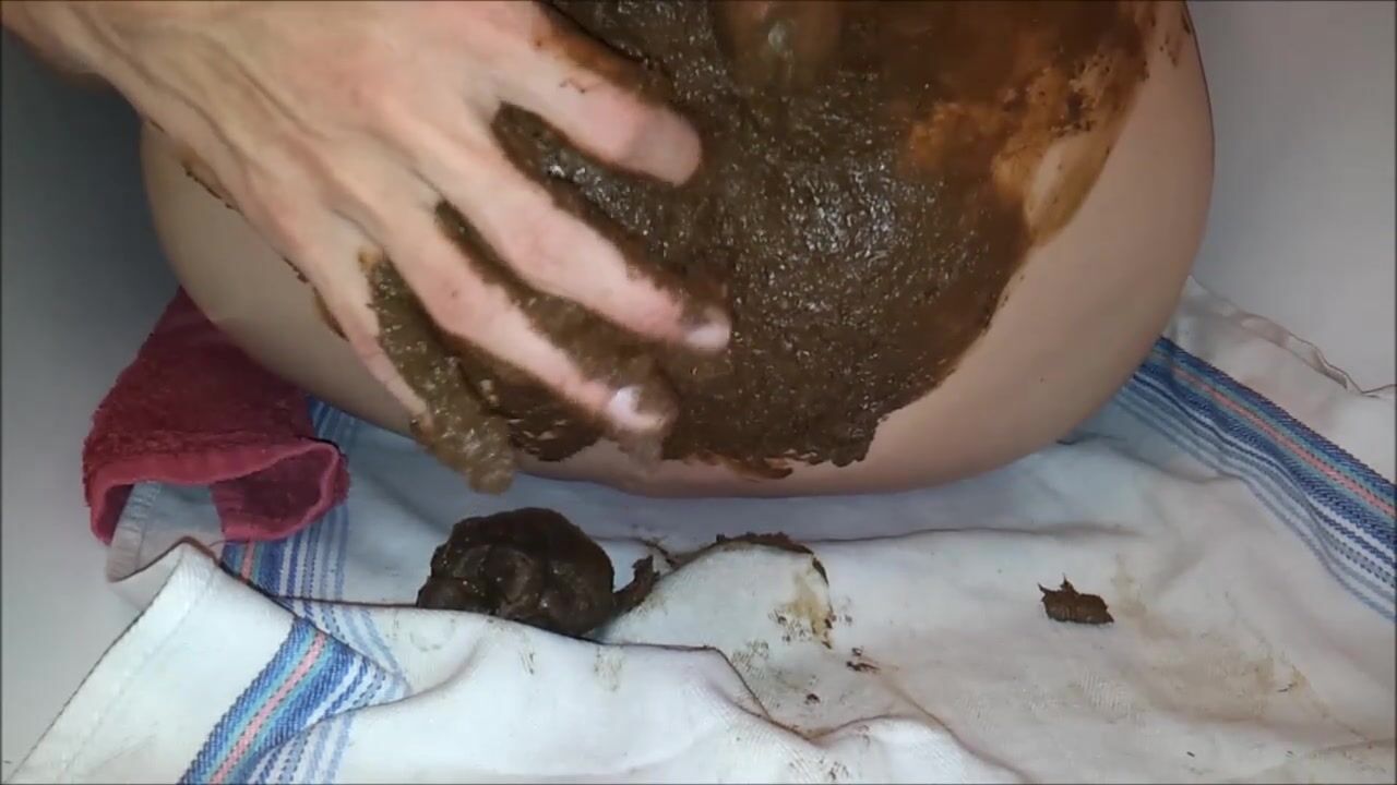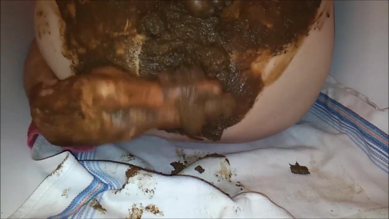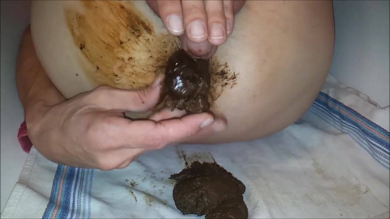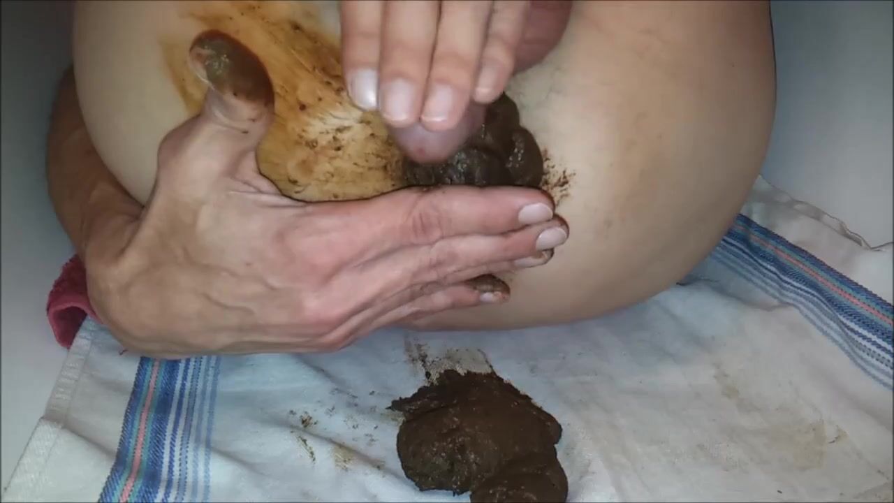 Copieuse décharge fécale que j'étale sur mes fesses, masturabtion et jouissance scato