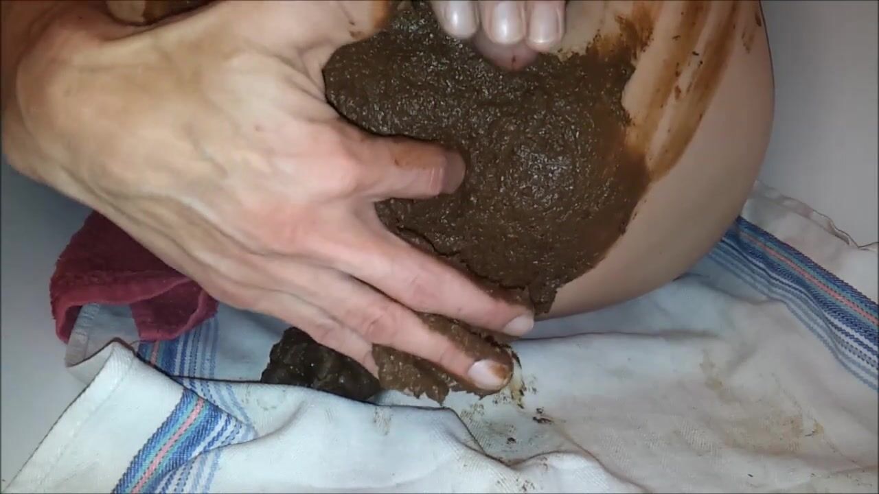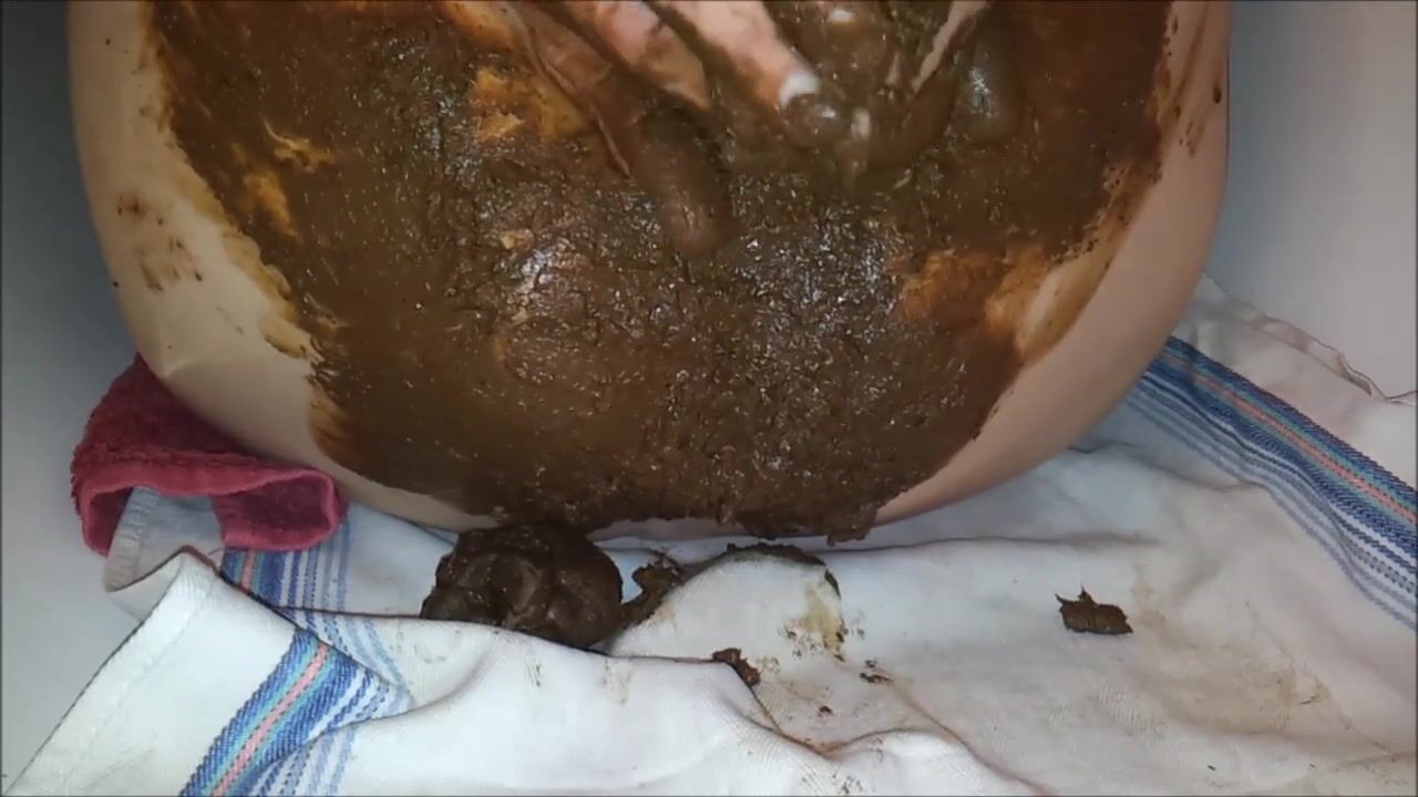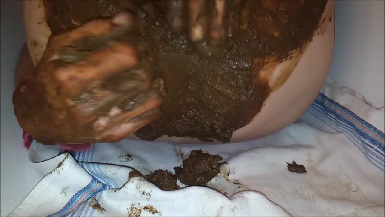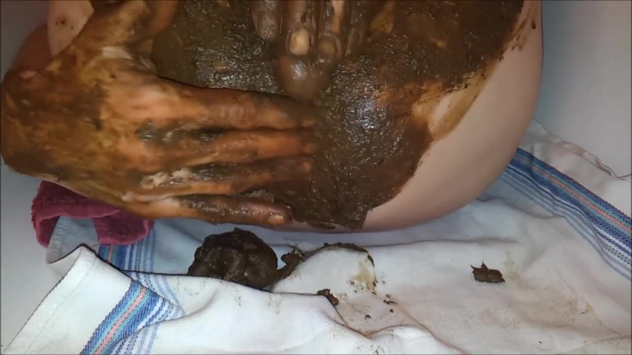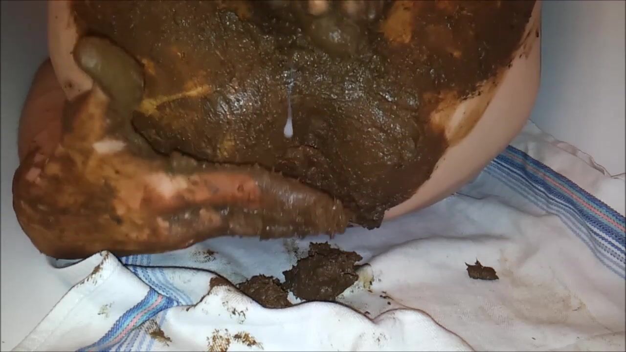 Copieuse décharge fécale que j'étale sur mes fesses, masturabtion et jouissance scato