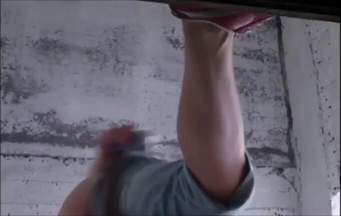 Girl shitting diarrhea in a dirty public toilet