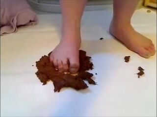 Bbw shitting and smearing it on her big breast and feet