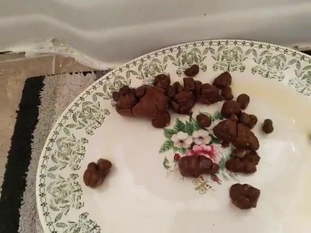 Pooping hard lumps on a serving plate