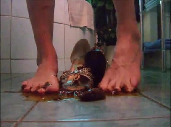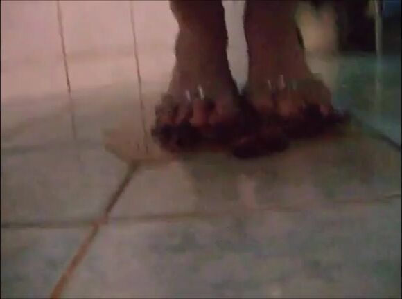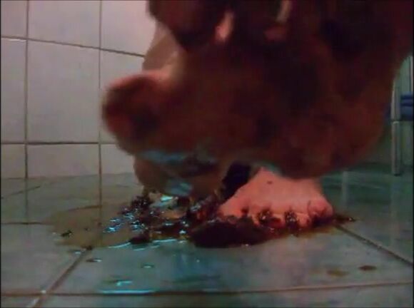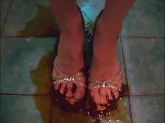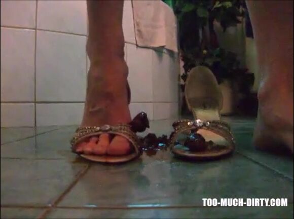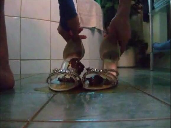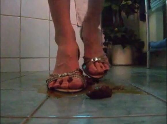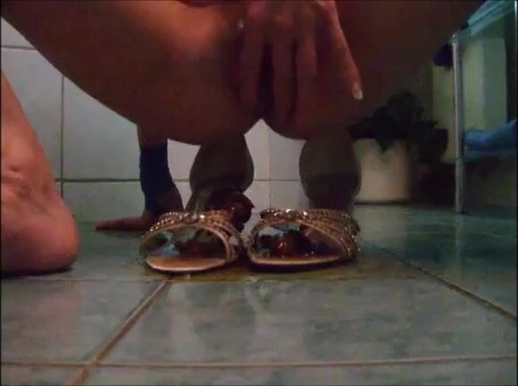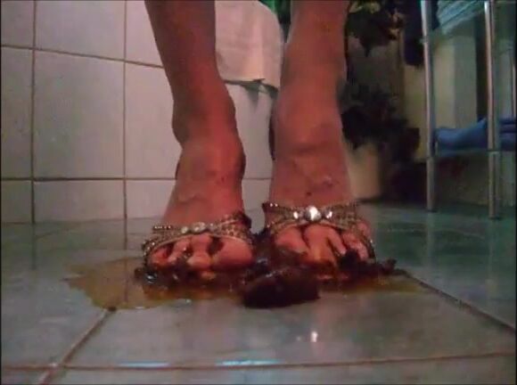 Girl shit on sandal then wear it