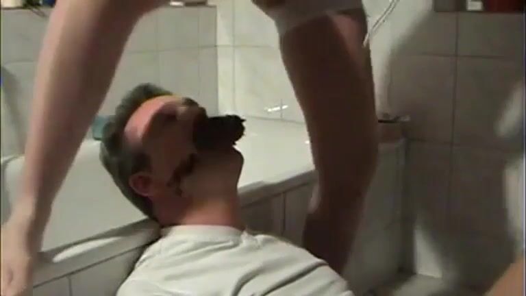 Girl open wide legs and shitting on the toilet floor