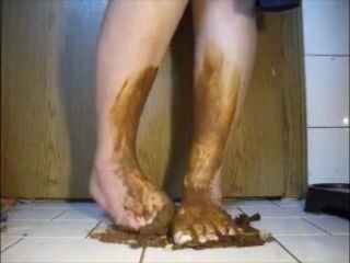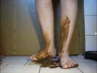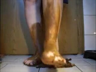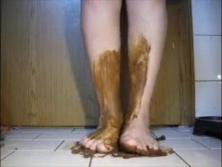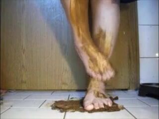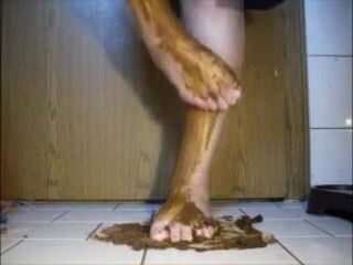 Mature bbw shitting and smear it on her feet