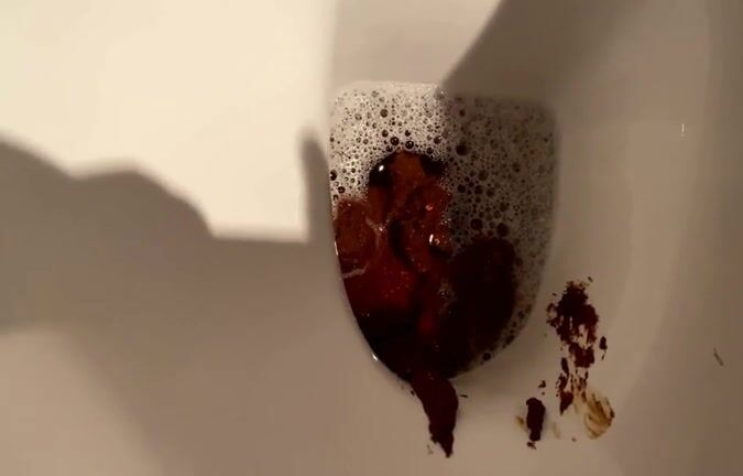 Blonde drops very fat turd in the toilet