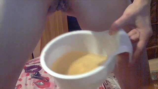 Indian lady drops hard poops into a glass
