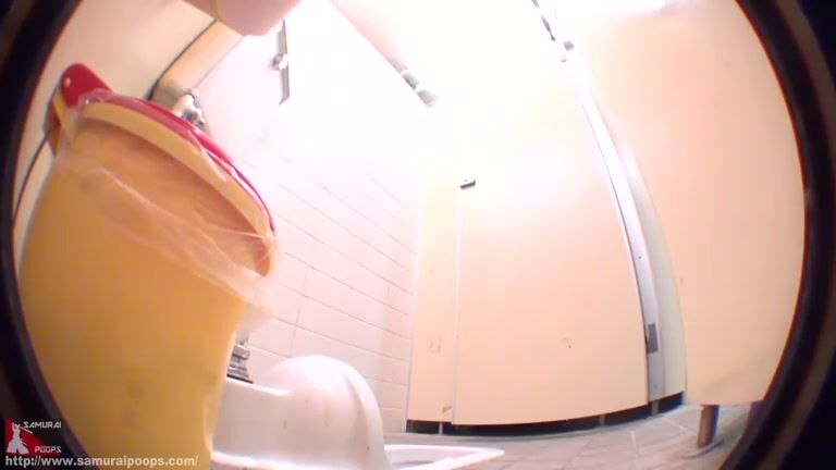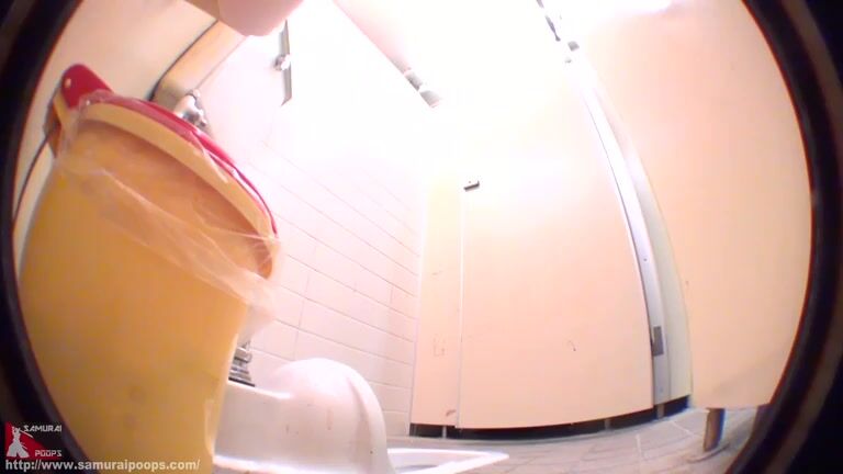 Girl open wide legs and shitting on the toilet floor