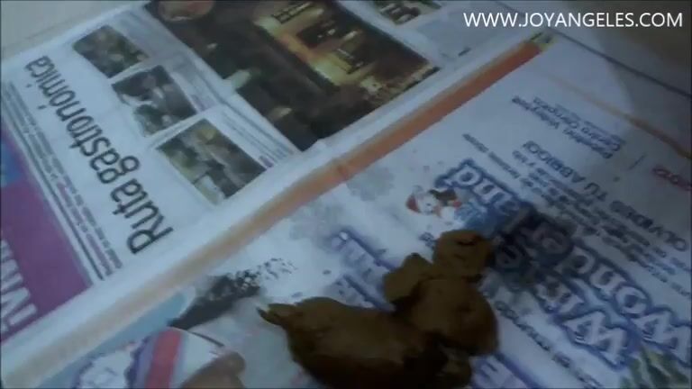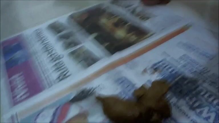 Naomi pooping on newspaper