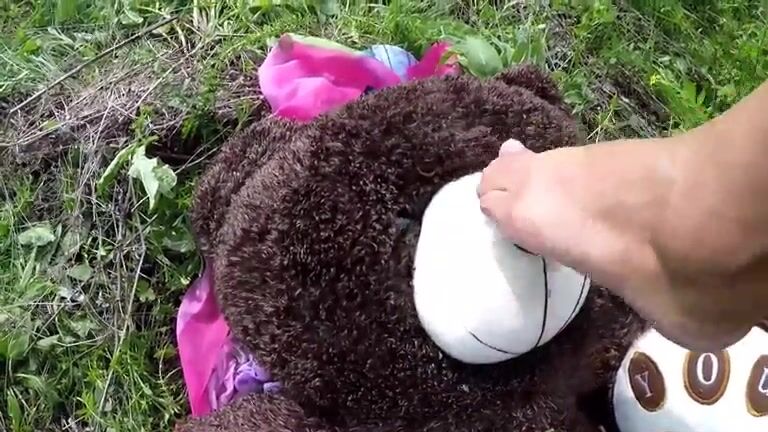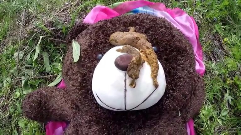She uses her big teddy as a toilet