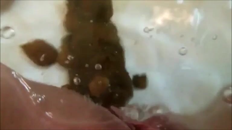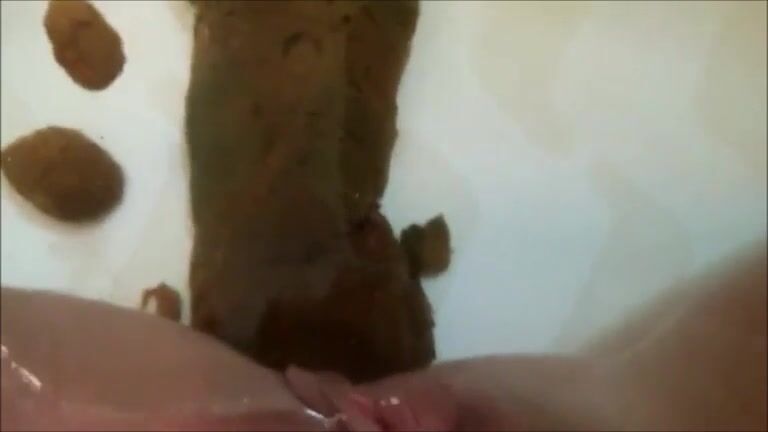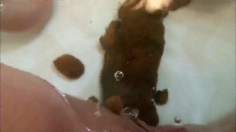 Woman shitting big turd in the water