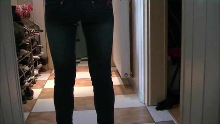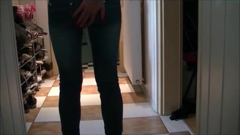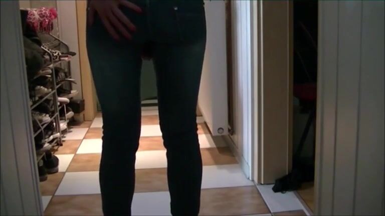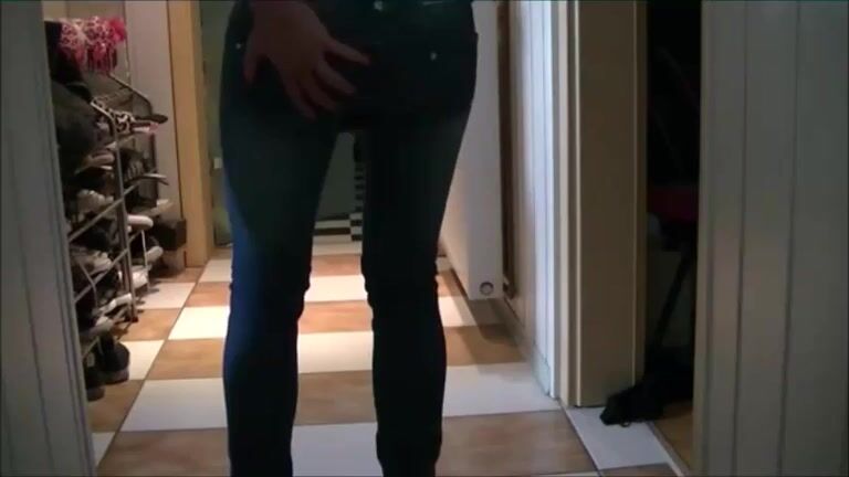 Girl is shitting on her blue jeans
