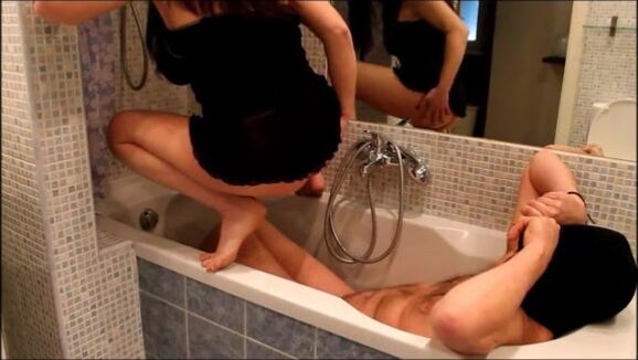 Woman shitting on a man dick masturbating and cum-cum