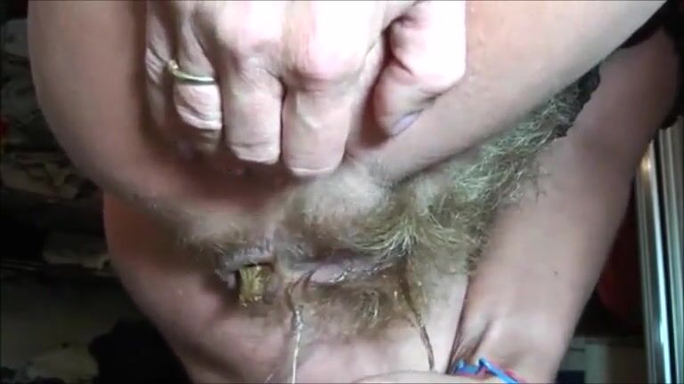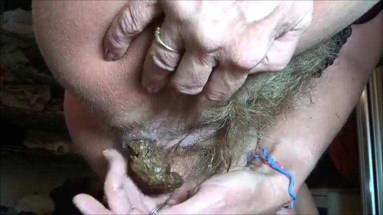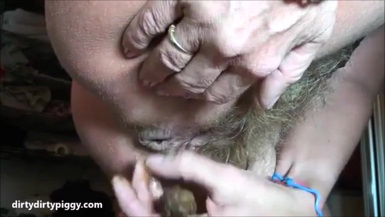 Hairy cunt woman shit and piss on her hand