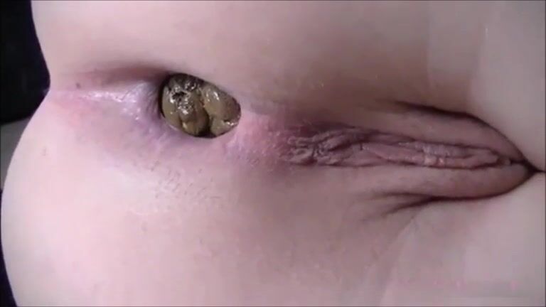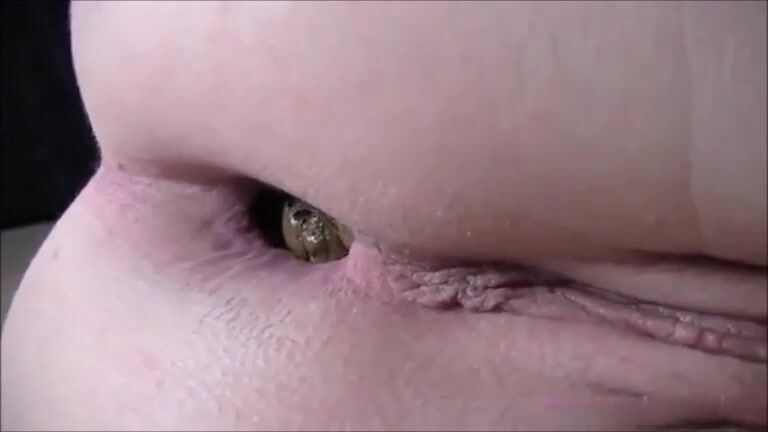 Shaved girl shitting closeup