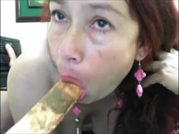 Latina milf dildoing asshole with dildo while shit on cam