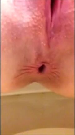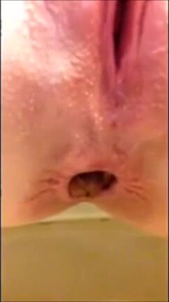 Shaved girl shitting long turd closeup