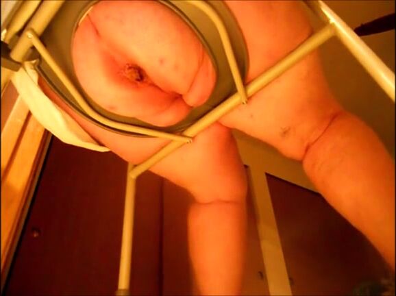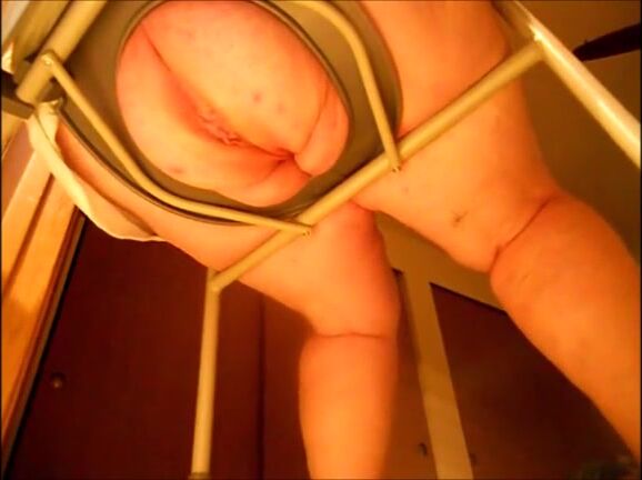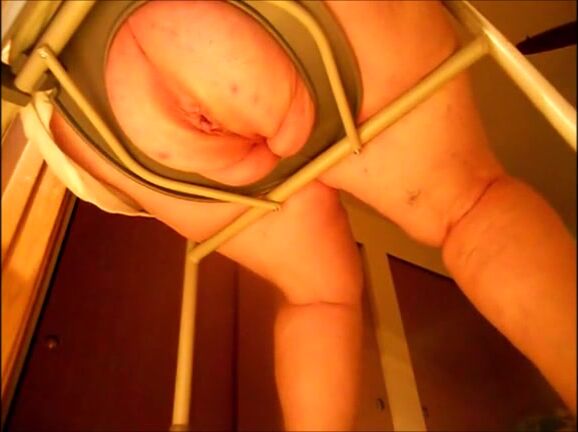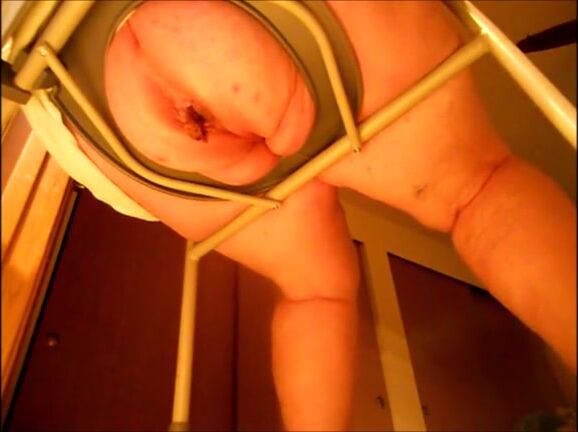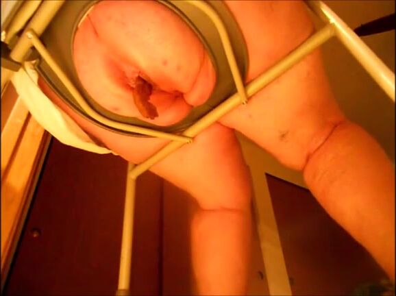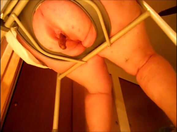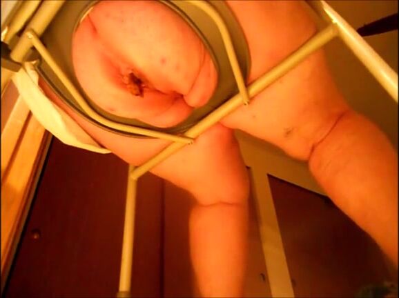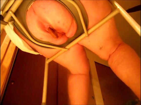 Big butt mature woman shitting on a shitting chair