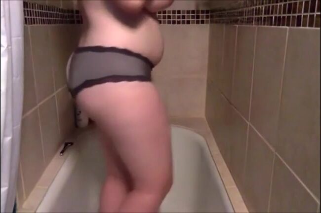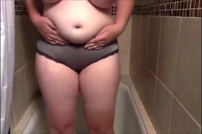 Big tits girl shitting on panty standing up