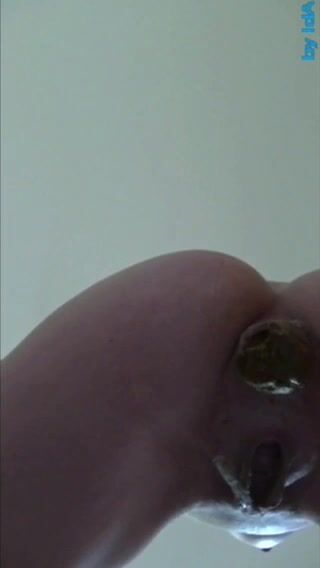 Girl in glasses fucks her ass and shits