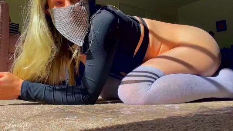 Girl open wide legs and shitting on the toilet floor