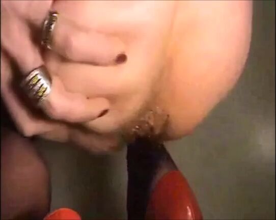 Hairy milf in high heels and lingerie shitting on the floor