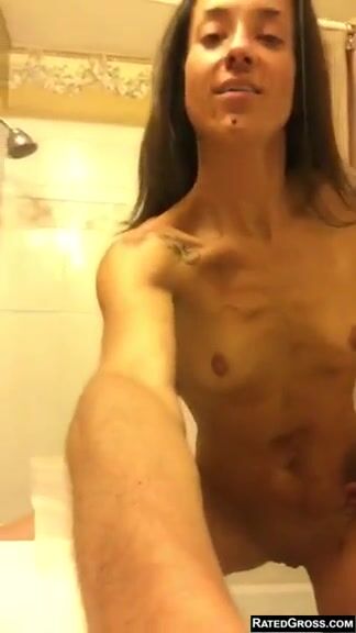 cute and sexy naked dark blonde crapping and peeing