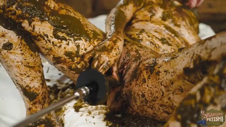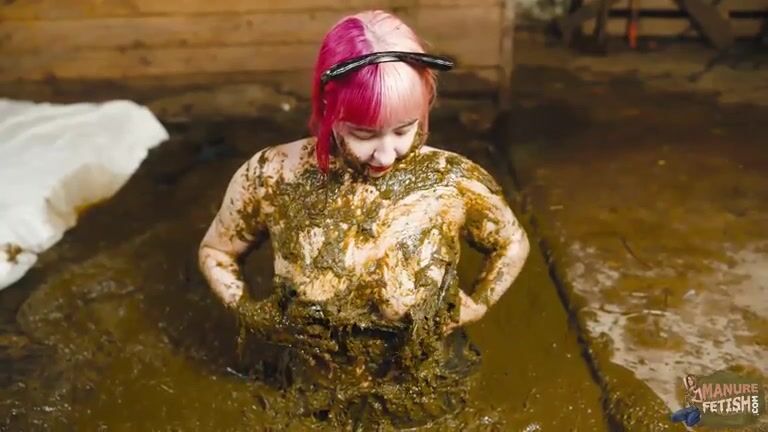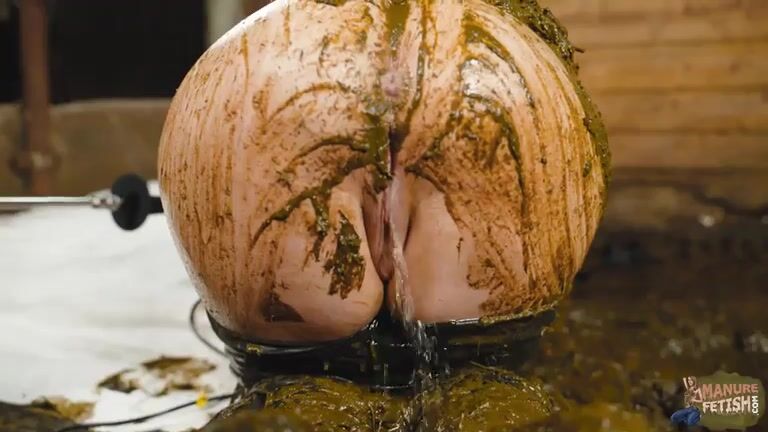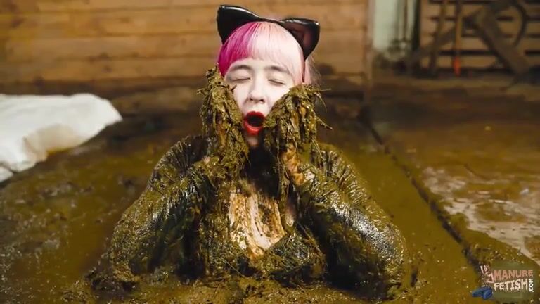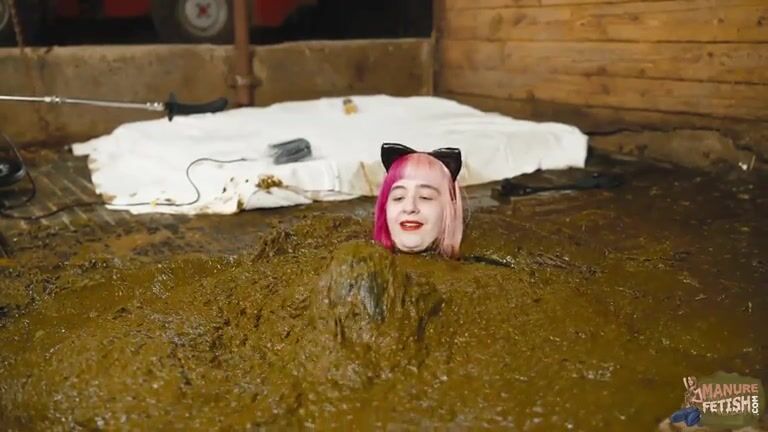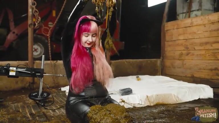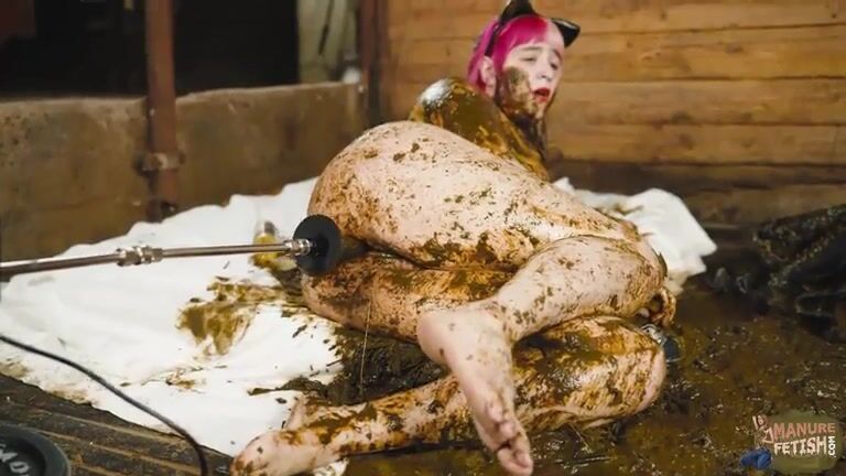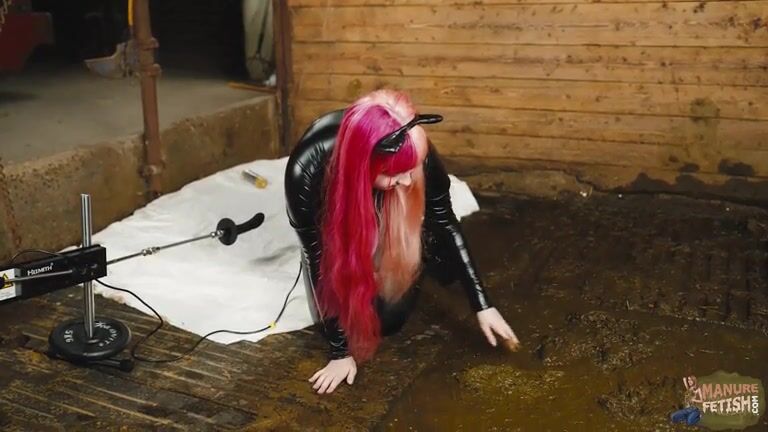 Catwoman Lyndra masturbates in cowshit