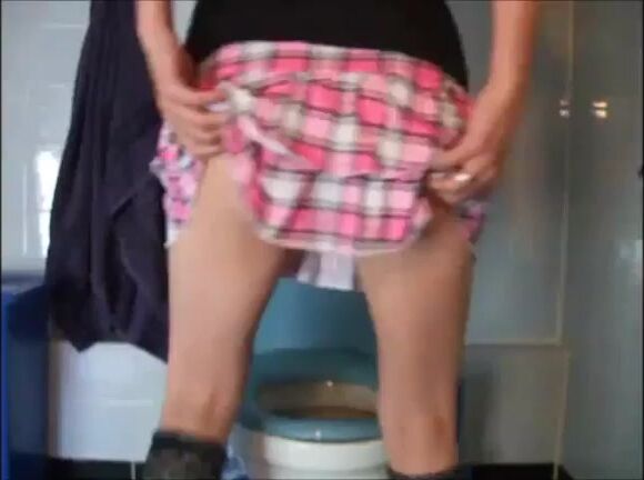 Girl in miniskirt shitting in the toilet
