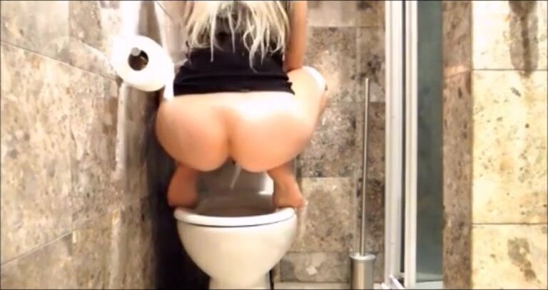 Hot butt blonde shitting in the toilet